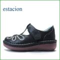 エスタシオン ESTACION et06nv ネイビー 【おすすめの軽いソール・お花畑を散歩。エスタシオン靴・可愛い!花花・ Tストラップ スリッポン】