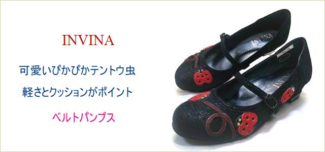 INVINA インビナ iv1530bl ブラック 【可愛いぴかぴかテントウ虫・・軽さとクッションがポイント INVINA ベルトパンプス】