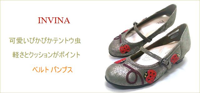INVINA インビナ iv1530ok オ―ク 【可愛いぴかぴかテントウ虫・・軽さとクッションがポイント INVINA ベルトパンプス】