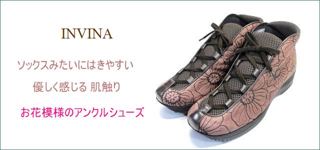 | 製品名 | INVINA インビナ iv550dn ダークブラウン 【ソックスみたいに履きやすい・優しく感じる肌触り INVINA お花模様のアンクルシューズ】 |