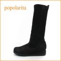 popolarita ポポラリタ po1420bl ブラック 【きっと自分が好きになる・・可愛いオブリック・スタイル。。popolarita・・フィットするニットブーツ】/底の厚さ(後ろ):4.0cm/底の厚さ(前):1.2cm/筒の高さ:29.5cm/履き口の筒まわり:27.0cm/重さ(片足):約310g/甲革:牛革(ソフトヌバックレザー)/中敷き:スポンジクッション入り中敷き/ワイズ:4E(EEEE)/サイズ選び方:普通サイズ選び/日本製 Made in Japan/