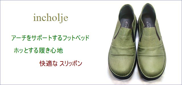 incholje インコルジェ in8303ka カーキ 【アーチをサポートするフットベッド・incholje ホッとする履き心地 スリッポン】